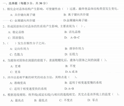 西南科技大学考博辅导班:2019年西南科技大学考博材料科学导论初试真题