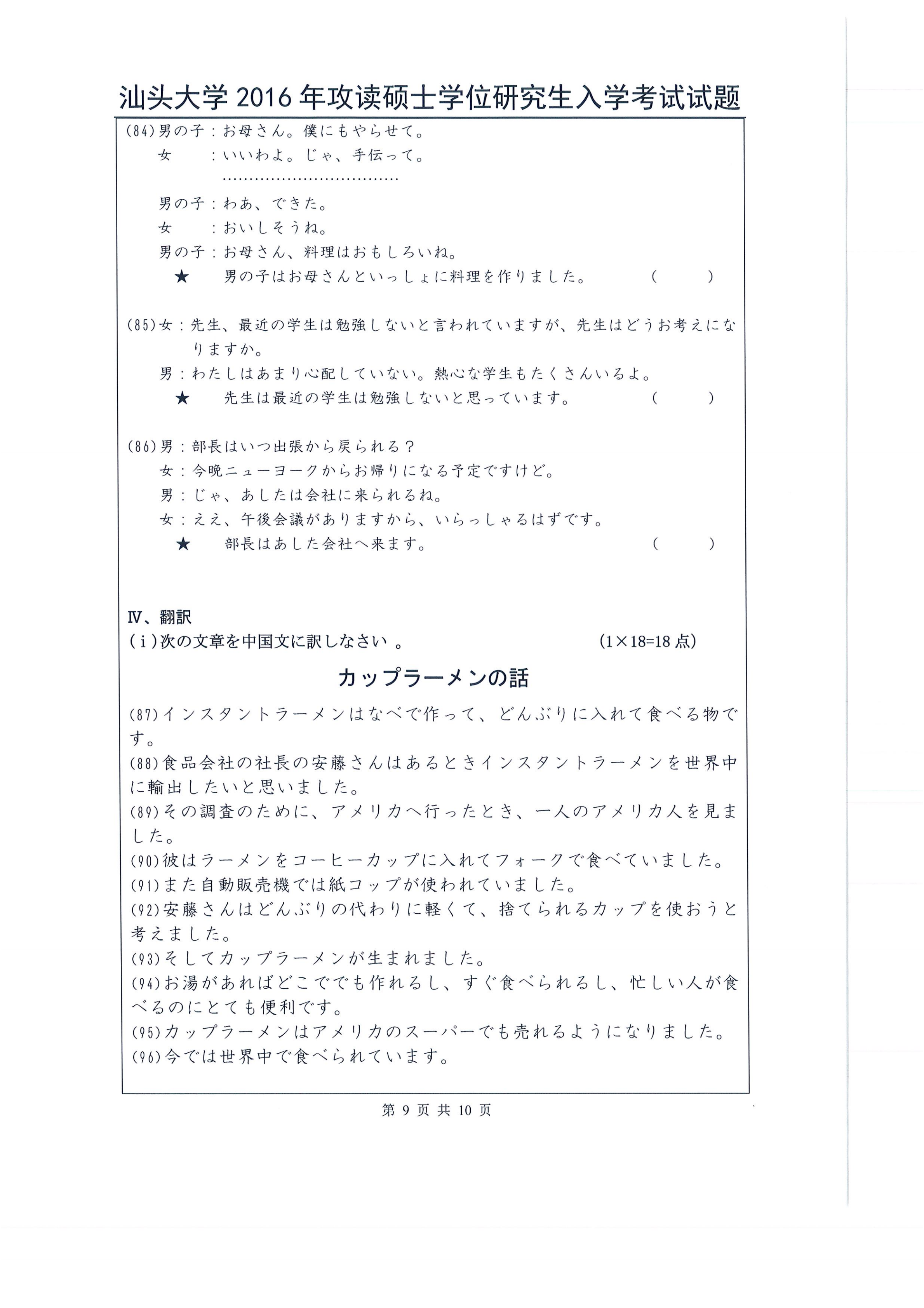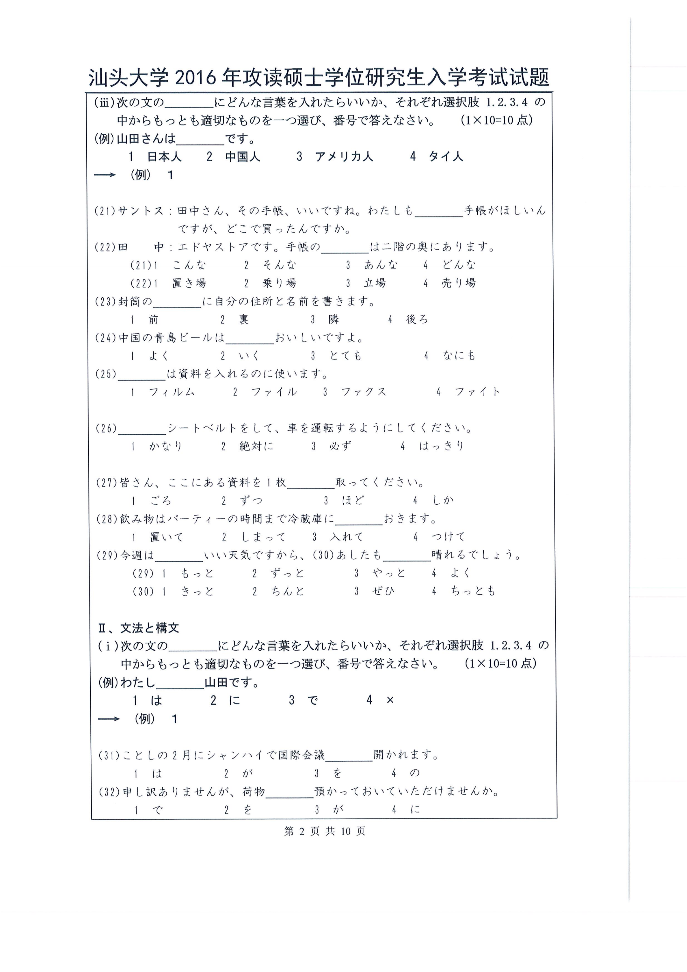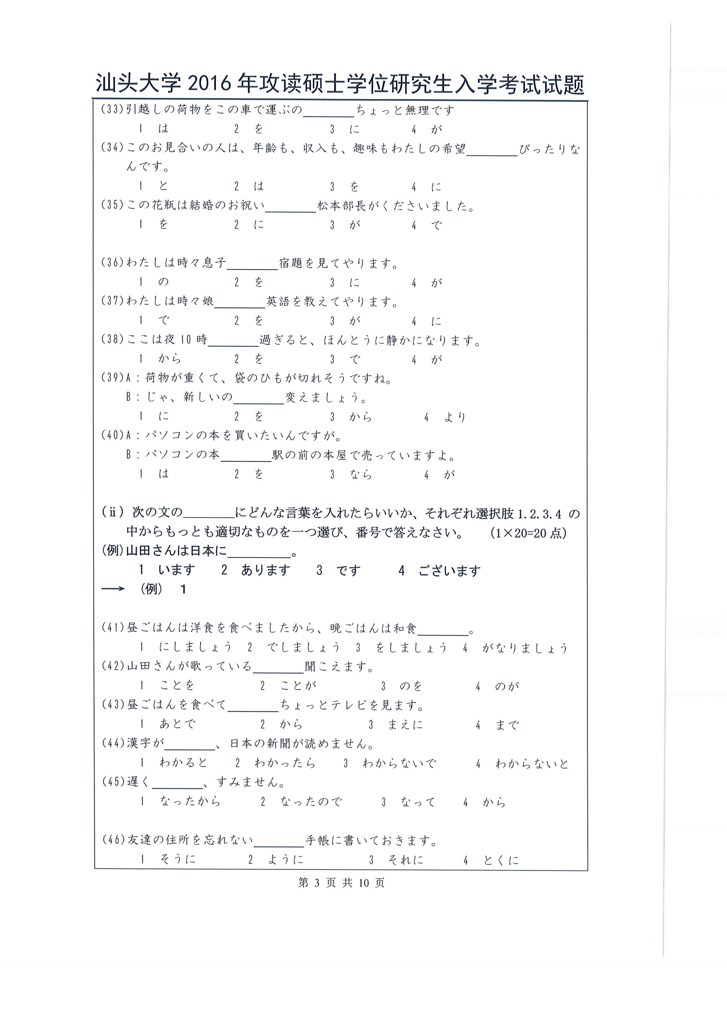 汕头大学考研辅导班:2016年汕头大学263日语考研真题