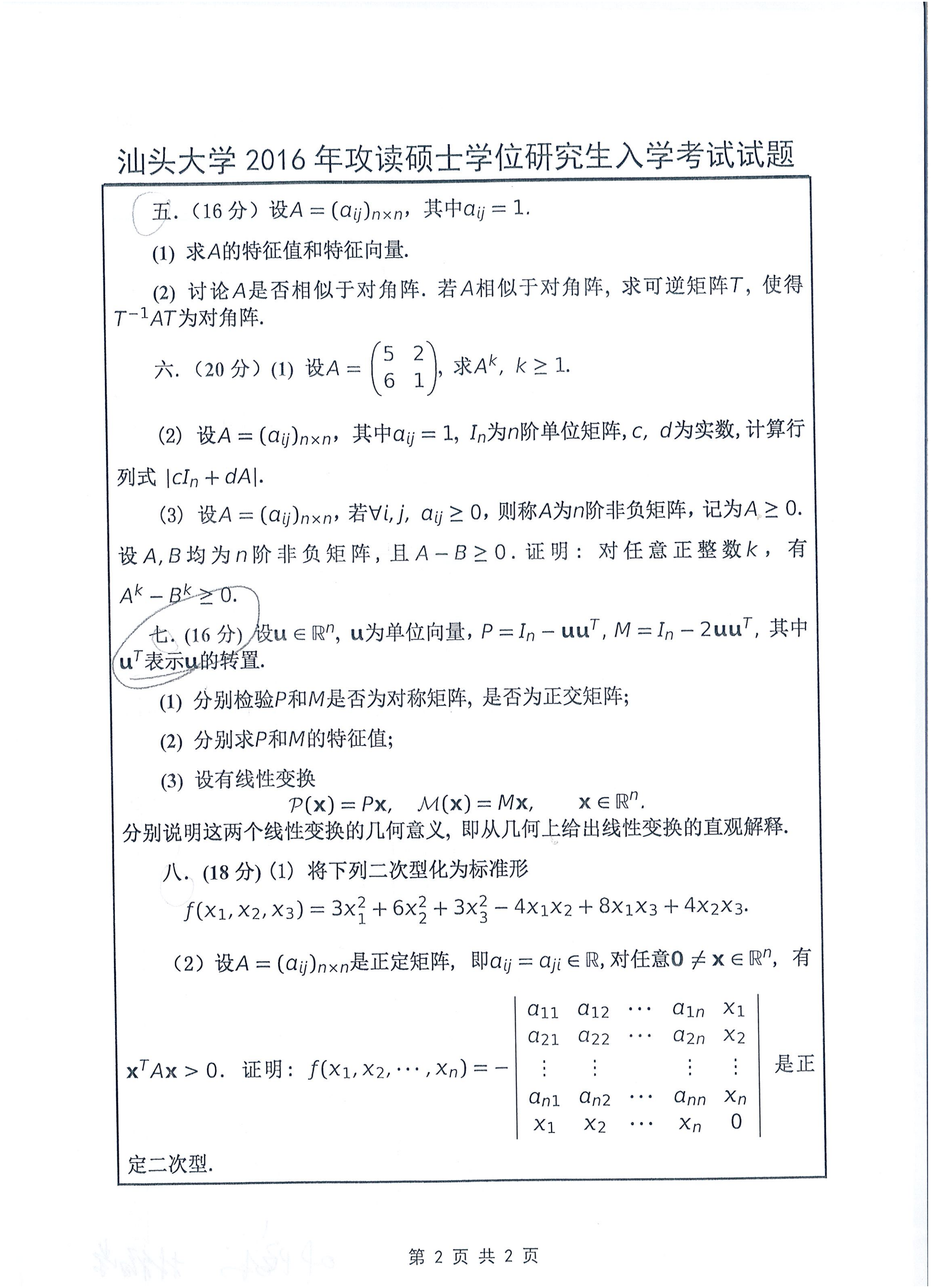 汕头大学考研辅导班:2016年汕头大学814高等代数考研真题