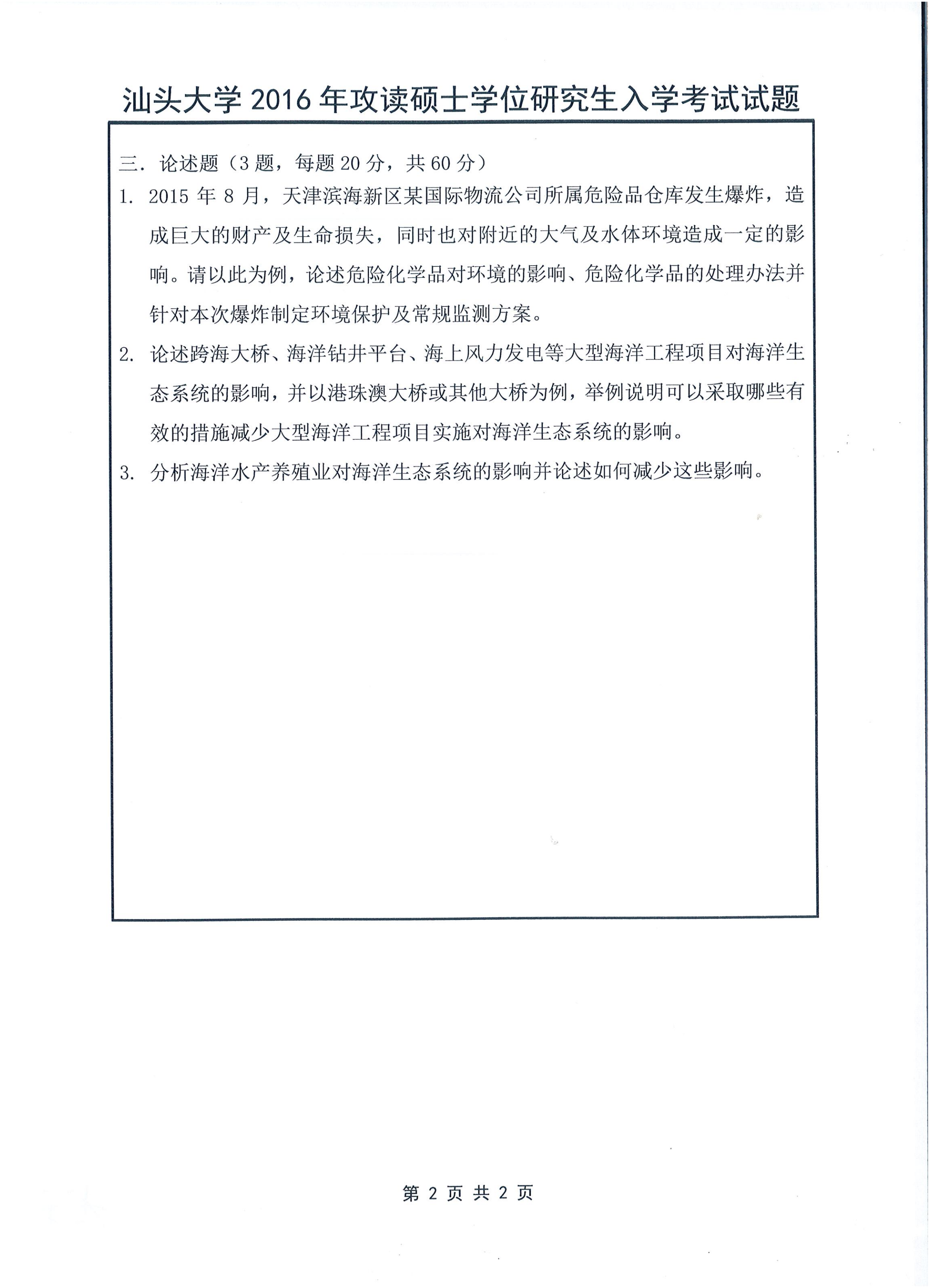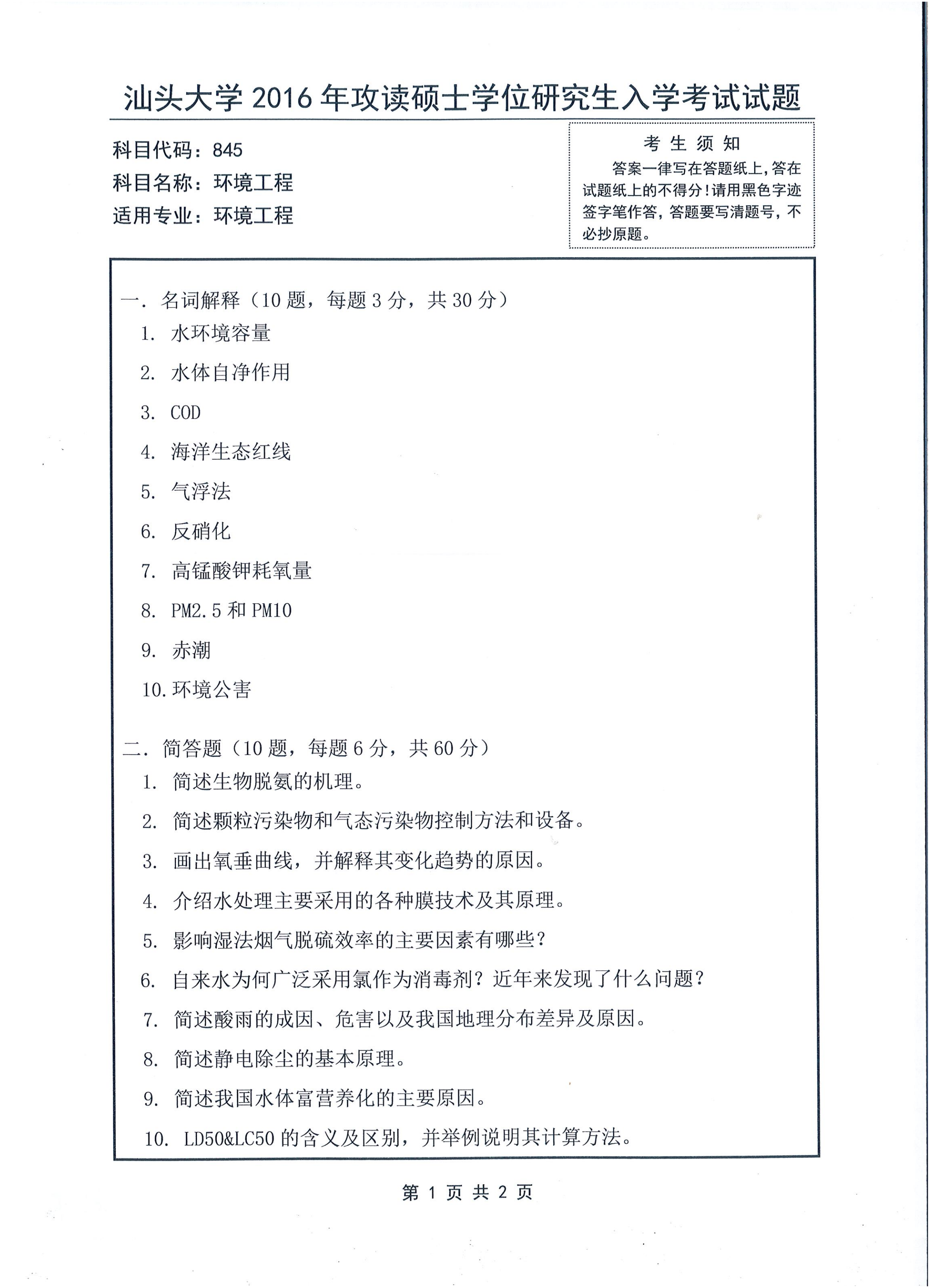汕头大学考研辅导班:2016年汕头大学845环境工程考研真题