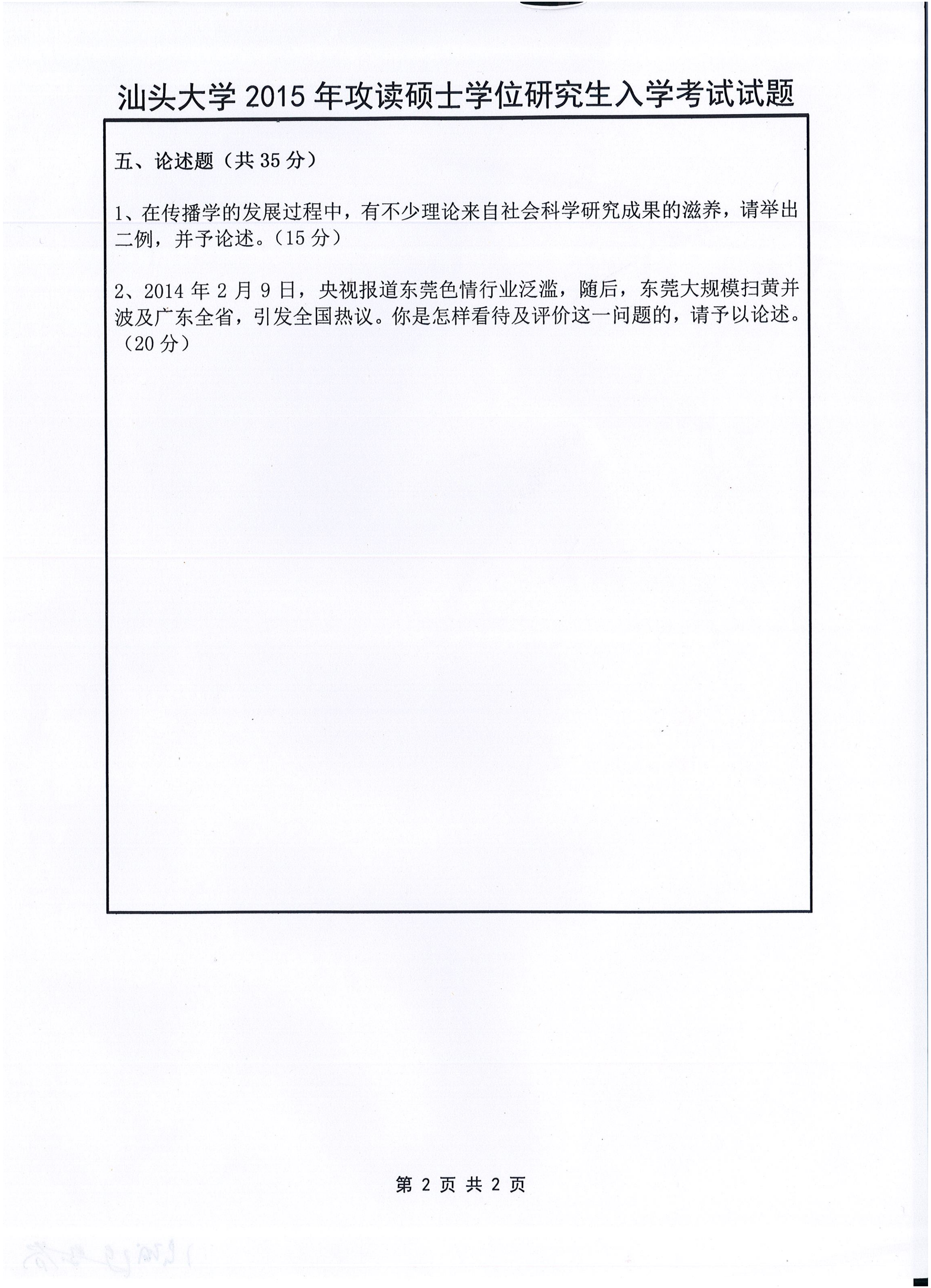 汕头大学考研辅导班:2015年汕头大学625中外新闻史和新闻传播理论考研真题