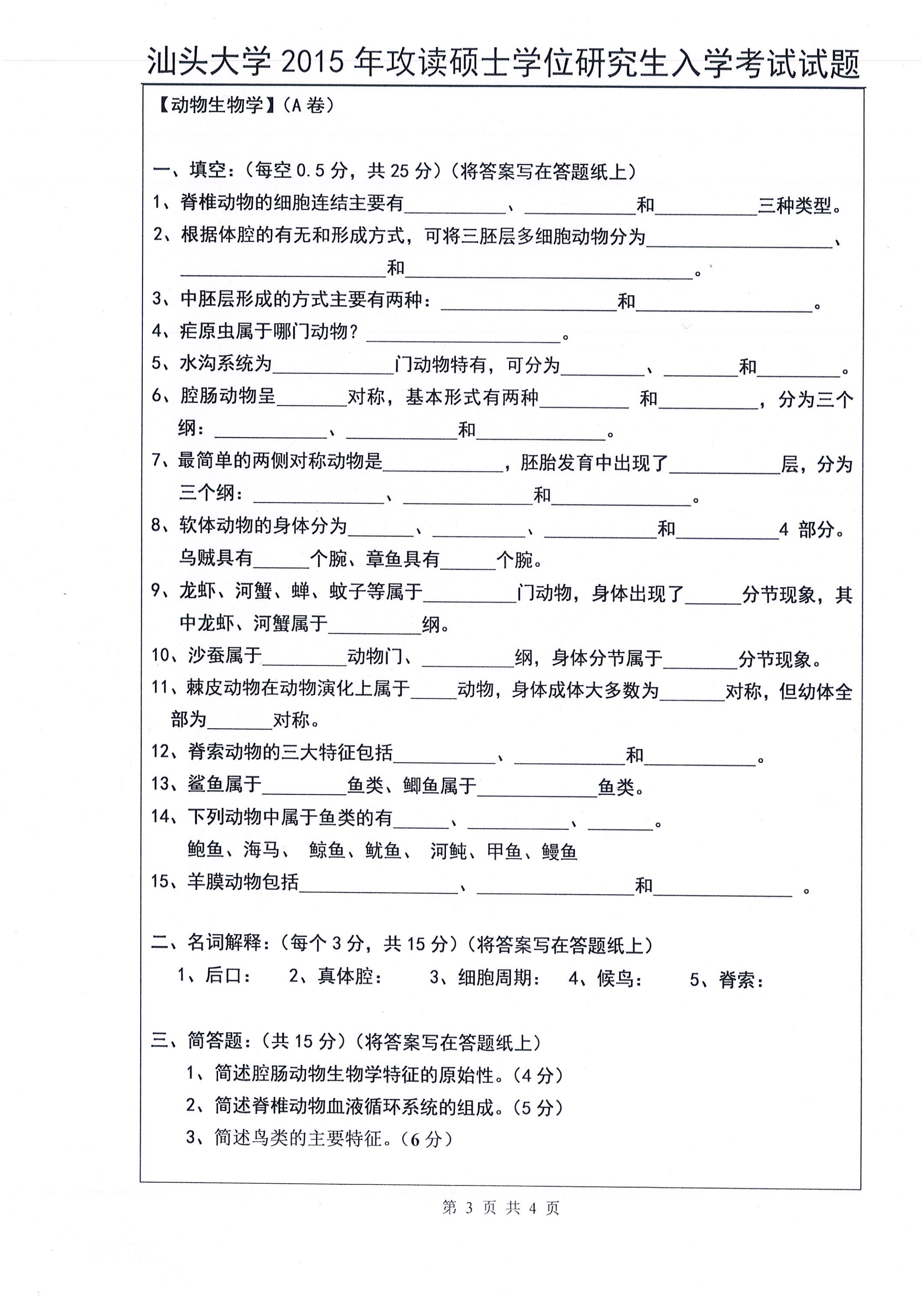汕头大学考研辅导班:2015年汕头大学考研817普通生物学真题