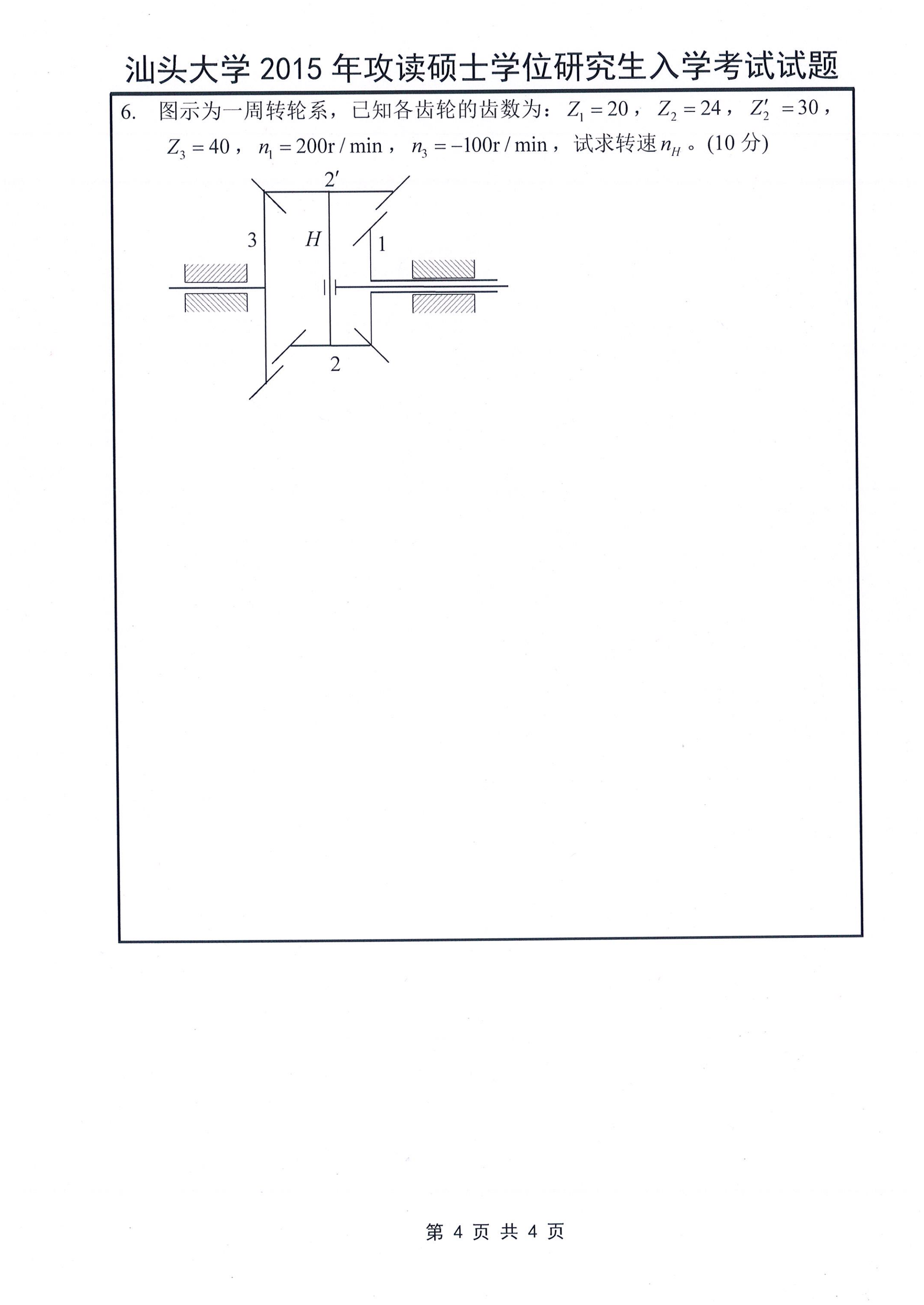 汕头大学考研辅导班:2015年汕头大学考研826机械原理真题