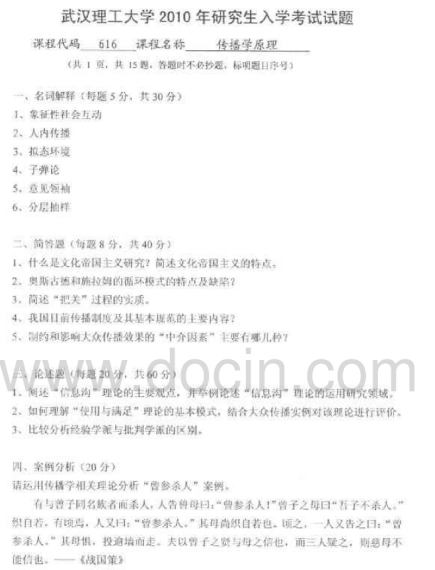 2020-2021年武汉理工考研辅导班:武汉理工大学616新闻传播理论2010考研真题
