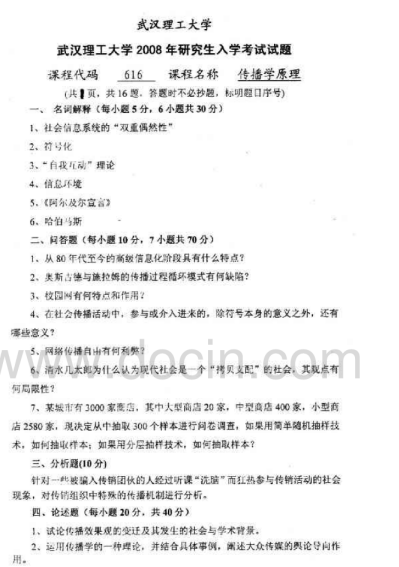 2020-2021年武汉理工考研辅导班:武汉理工大学616新闻传播理论2008考研真题