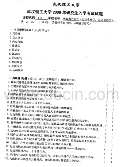 2020-2021年武汉理工考研辅导班:武汉理工大学617体育教育专业综合2009年考研真题