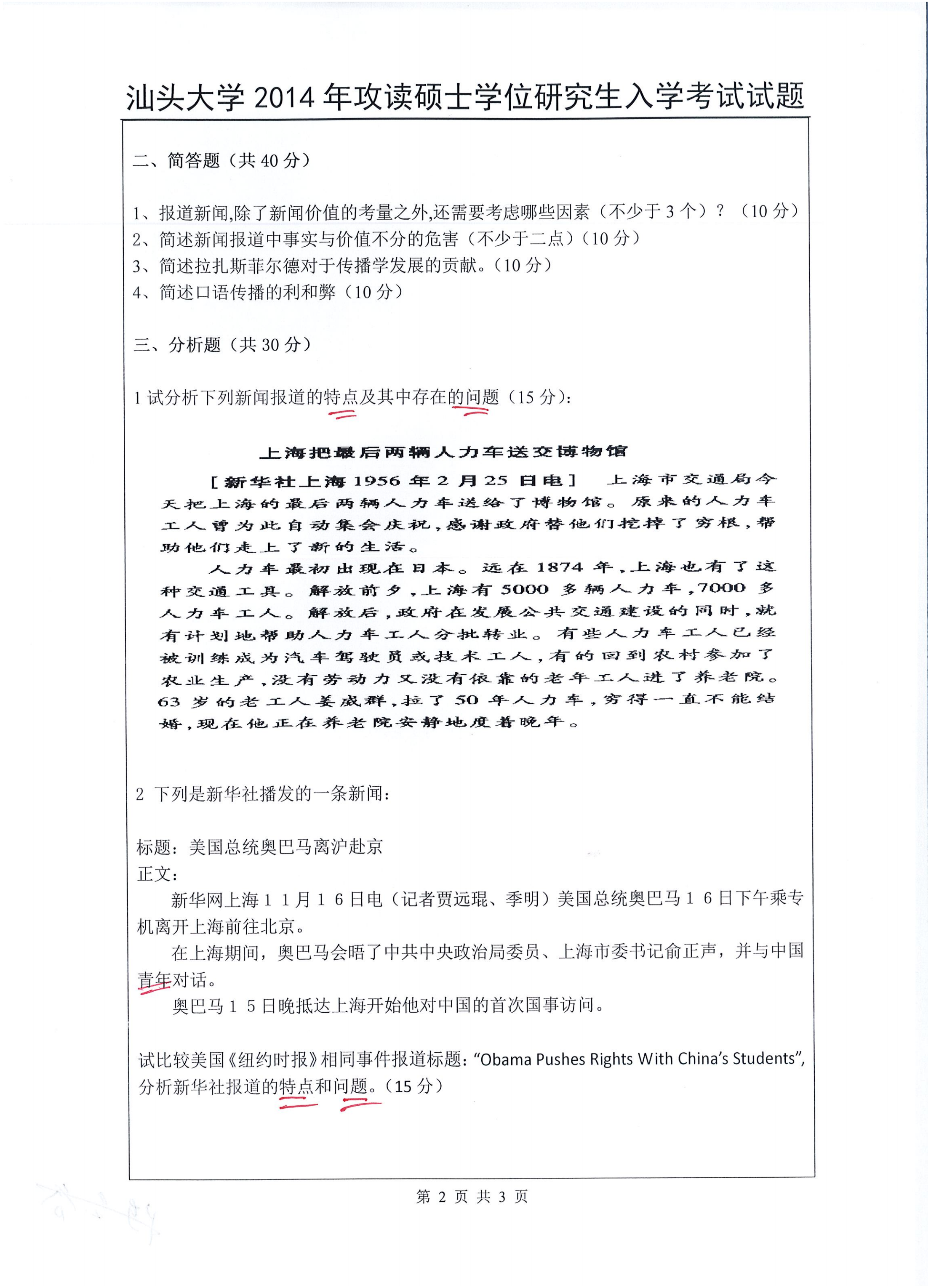 汕头大学考研辅导班:2014年汕头大学考研625中外新闻史和新闻传播理论真题