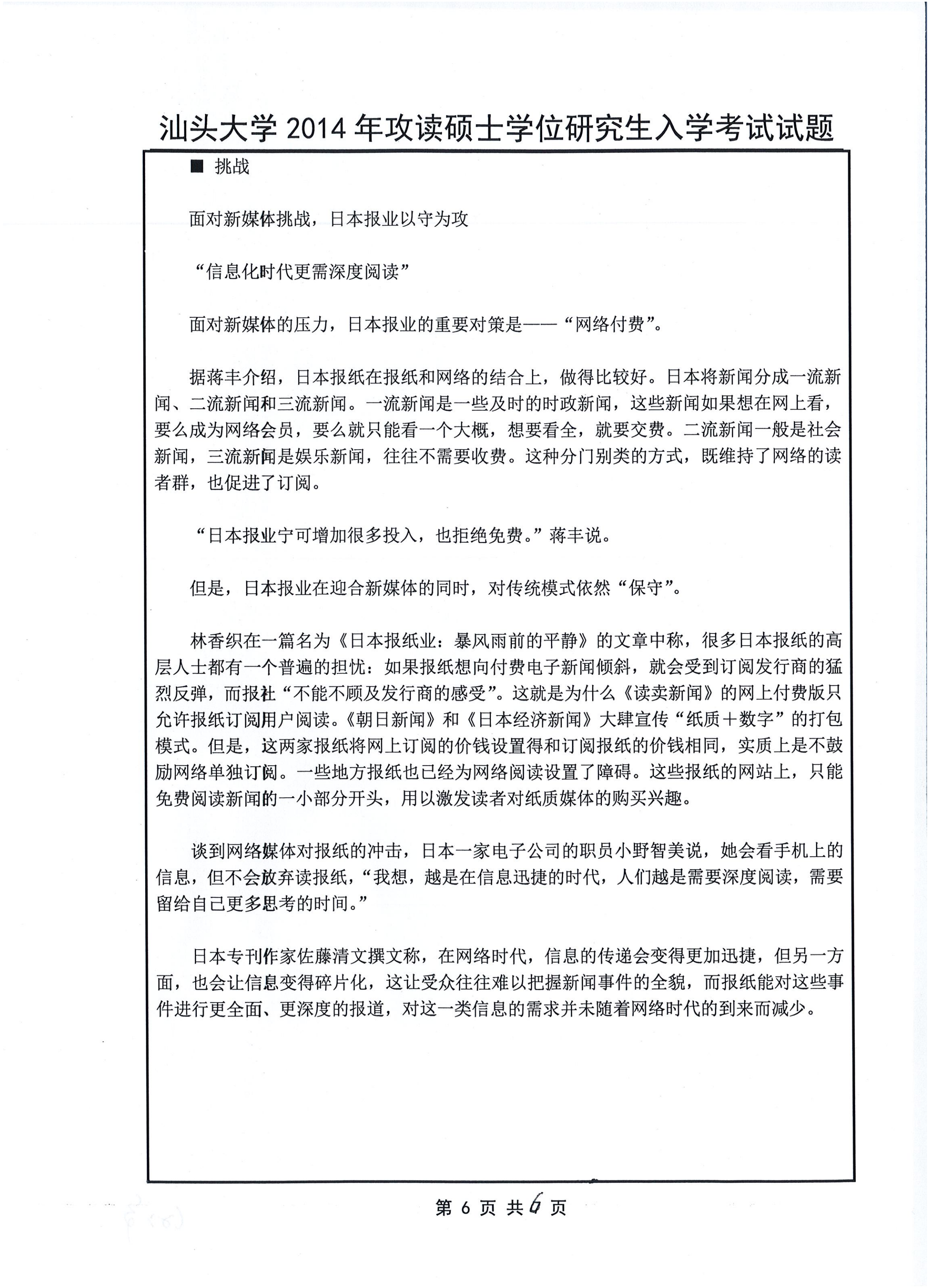 汕头大学考研辅导班:2014年汕头大学考研805新闻与传播学实务真题
