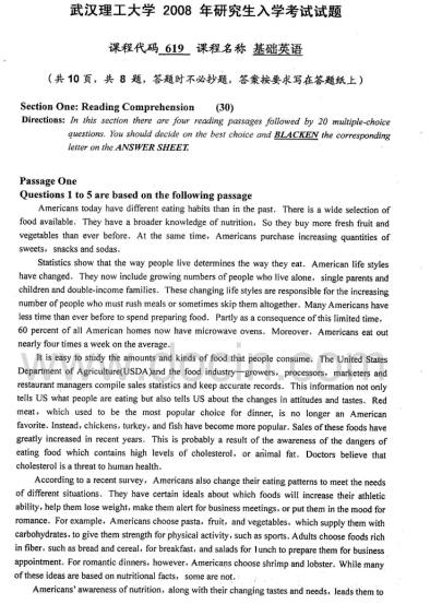 2020-2021年武汉理工考研辅导班:武汉理工大学619基础英语2008考研真题