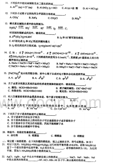 2020-2021年武汉理工考研辅导:武汉理工大学623无机化学2008年考研真题