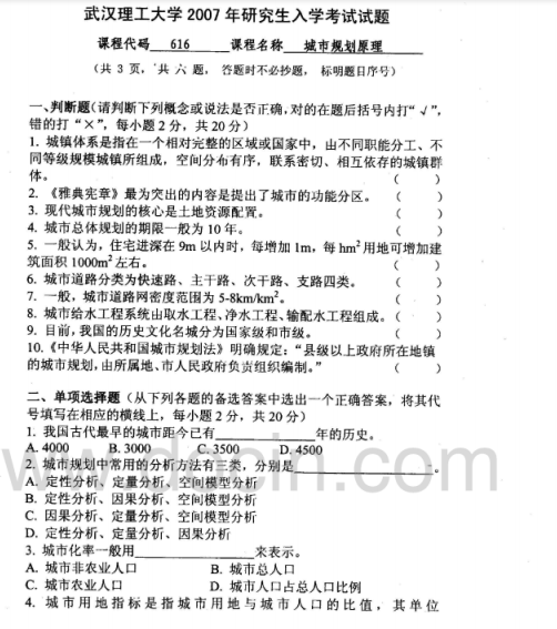 2020-2021年武汉理工考研辅导:武汉理工大学628城市规划原理2007考研真题