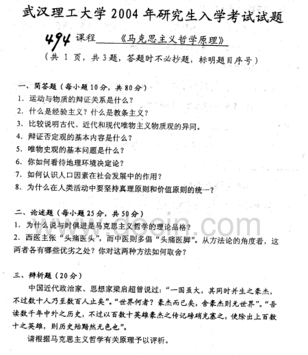 2020-2021年武汉理工考研辅导:武汉理工大学629马克思主义哲学原理2004考研真题