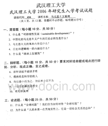 2020-2021年武汉理工考研辅导:武汉理工大学629马克思主义哲学原理2006考研真题