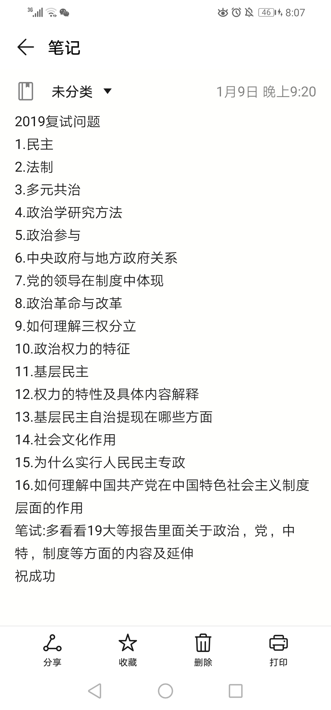 (3)考研专业课:1.专业课书目有三本:政治学基础(第三版)王浦劬(除最后一章国际政治外),当代中国政府与政治(第二版)(第三版)谢庆奎,中国政府与政治(主要是地方财政部分)吴理财。复习经验如下