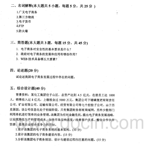 2020-2021年武汉理工考研辅导班:武汉理工大学805电子商务概论2009年考研真题