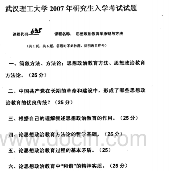 2020-2021年武汉理工考研辅导班:武汉理工大学811思想政治教育原理与方法2007年考研真题
