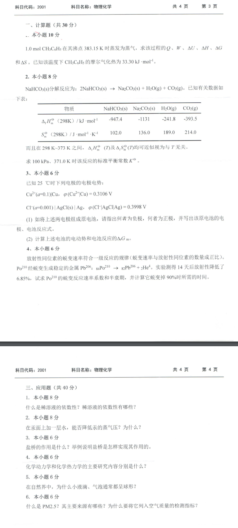西南科技大学考博辅导班:2019年西南科技大学2001物理化学考博真题分享