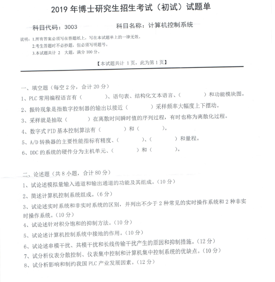 西南科技大学考博辅导班:2019年西南科技大学3003计算机控制系统考博真题分享