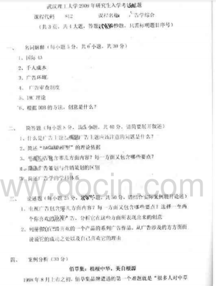 2020-2021年武汉理工考研辅导班:武汉理工大学812广告学综合2009年考研真题