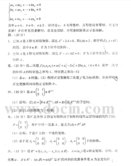 2020-2021年武汉理工考研辅导班:武汉理工大学817高等代数2003年考研真题