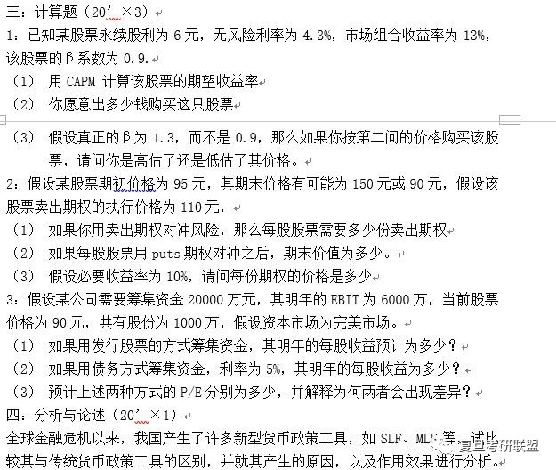 复旦大学考研辅导班:2018年复旦大学431金融学综合考研真题(回忆版)