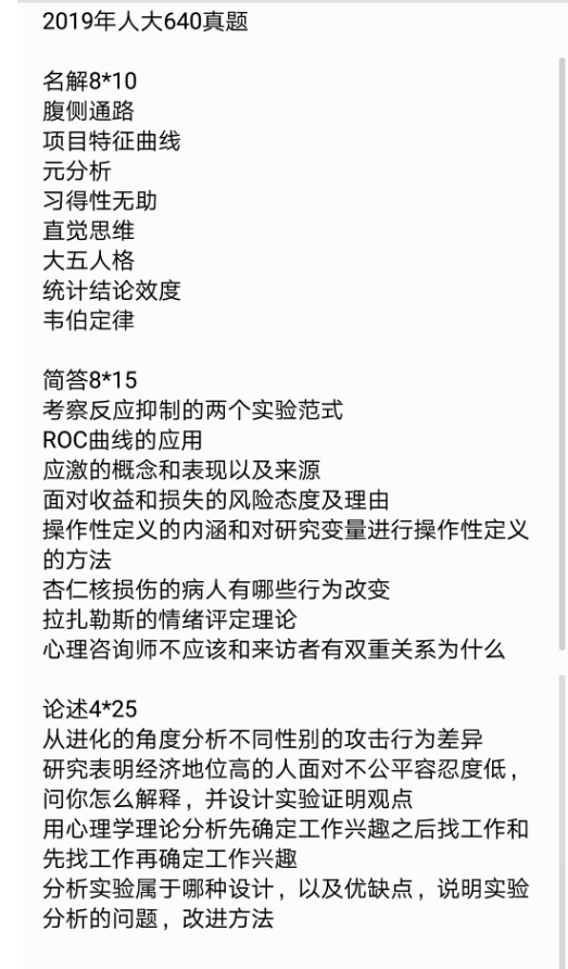 中国人民大学考研辅导班:2019年中国人民大学640心理学基础考研真题