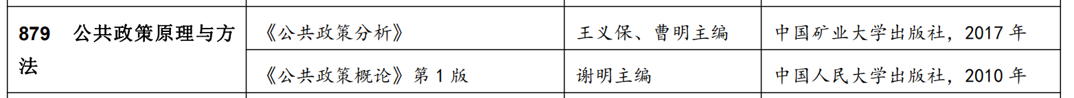 专业课代码及名称:625 公共管理学 879 公共政策原理与方法