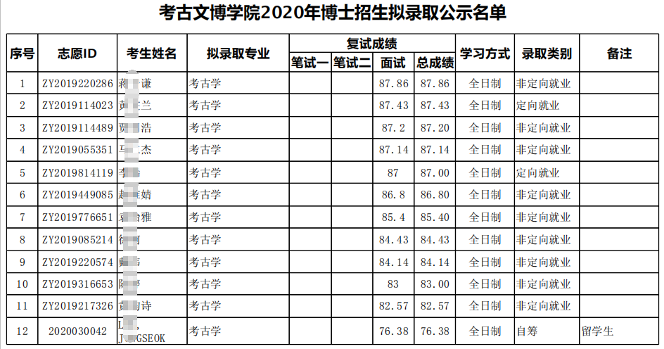 北大考博辅导班:2020年北京大学考古文博学院博士招生拟录取公示名单