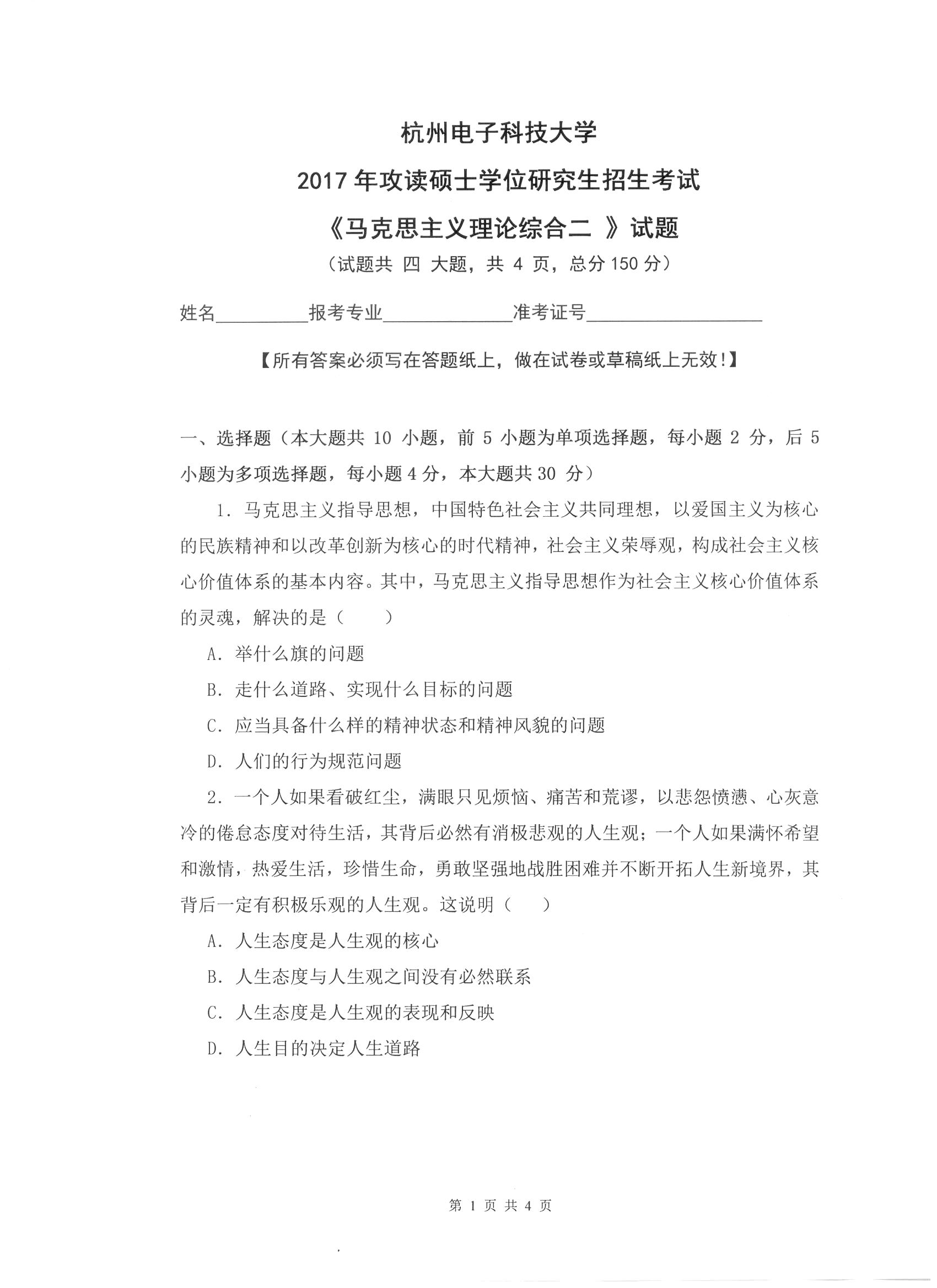 杭州电子科技大学考研辅导班:杭州电子科技大学2017年研究生招生考试马克思主义理论综合二科目考试题目