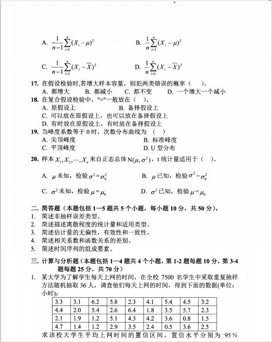 2014年中央财经大学432统计学考研真题