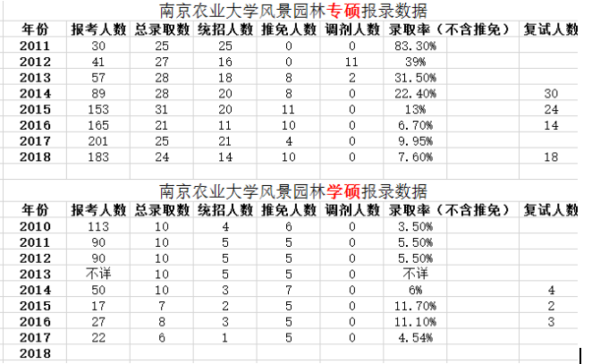 1) 南京农业大学风景园林报录情况,专业难度分析