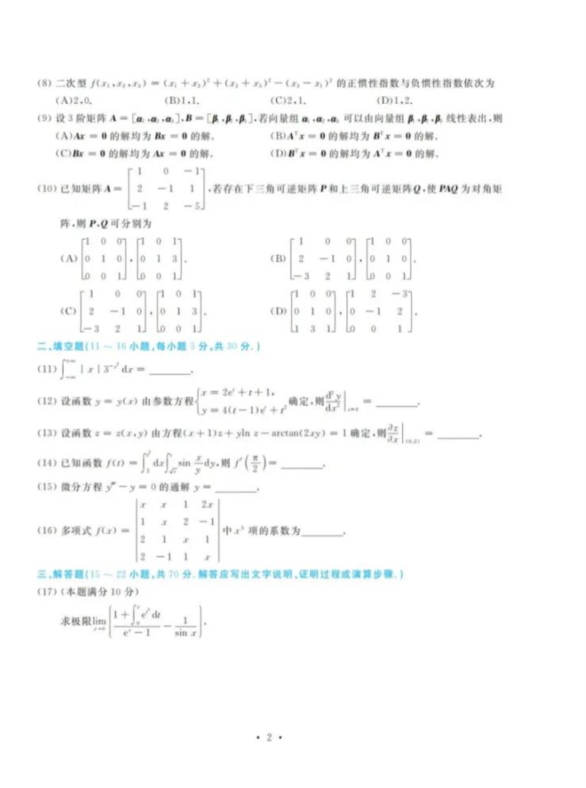 新祥旭考研:2021考研公共课----数学(二)回忆版真题