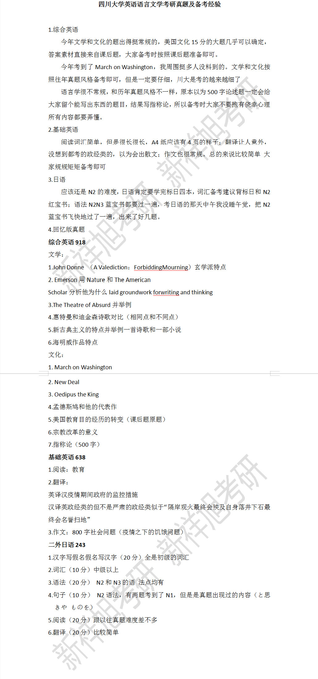 新祥旭考研:四川大学2021年英语语言文学考研真题及备考经验