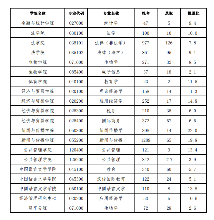 湖南大学考研报录比:2020年湖南大学硕士研究生各专业报录比