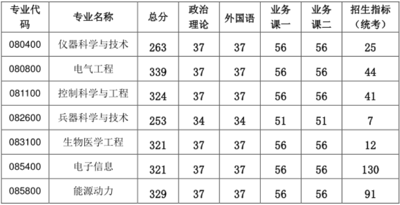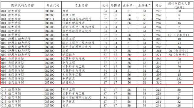 参见下图(注:无论学硕专硕,都考英语一;不同学院的控制各有其专业特色;总体来说,自动化院的分数录取分最高,航天院的较低)