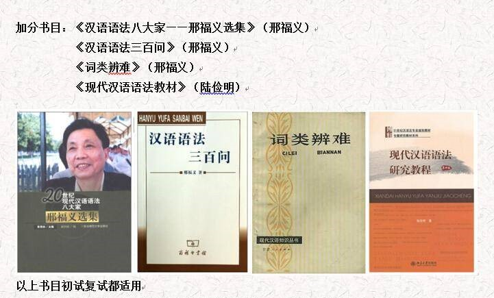 现代汉语语法部分在对《现代汉语》这书本十分熟悉之后可以看看《汉语语法三百问》和《词类辨难》,对分析题比较有帮助,后期如果大家有时间想看论文,建议阅读时整理一下每篇论文的框架,思考论文是从哪些角度分析某一问题的,形成答题思路。