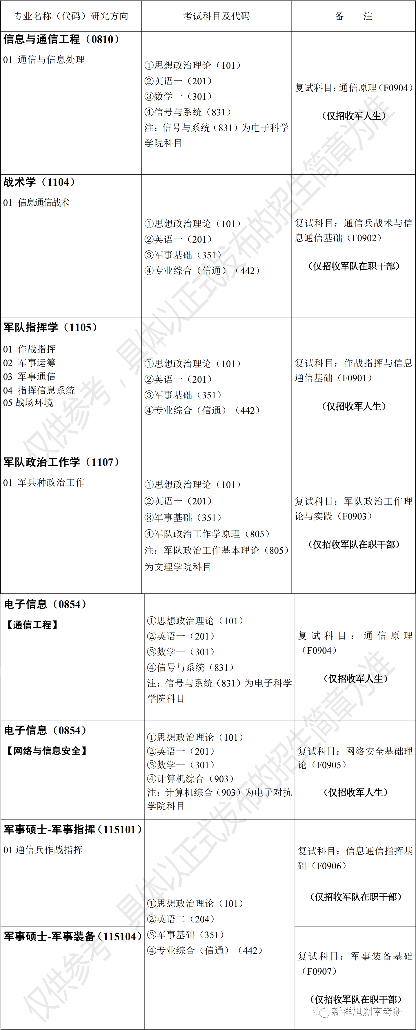 国防科技大学考研辅导班:2022年国防科技大学信息通信学院硕士研究生招生专业、考试科目