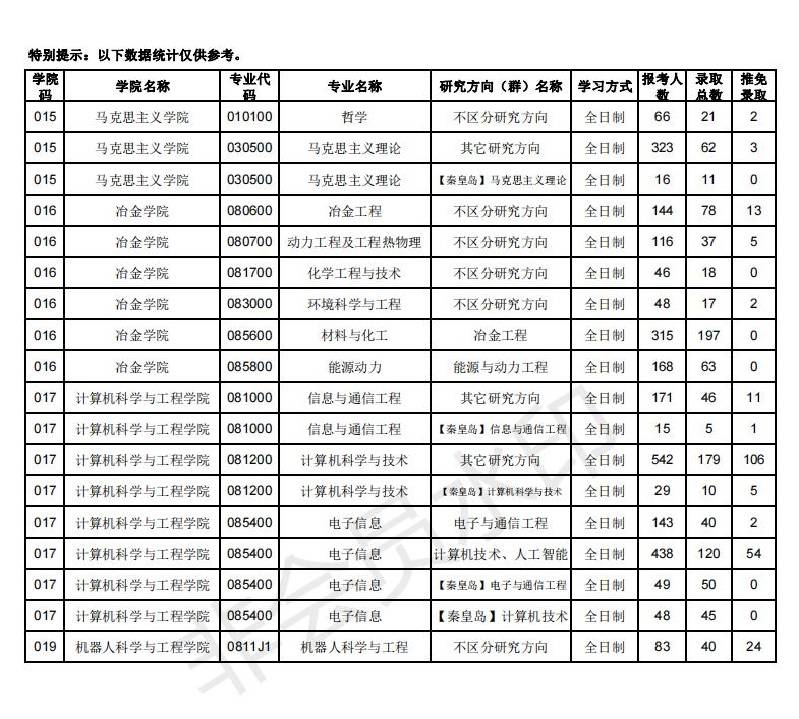 19年东北大学报考人数、录取人数、保研推免人数