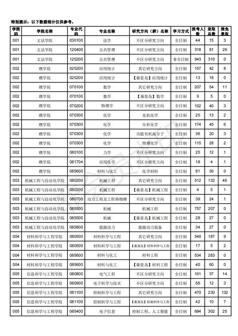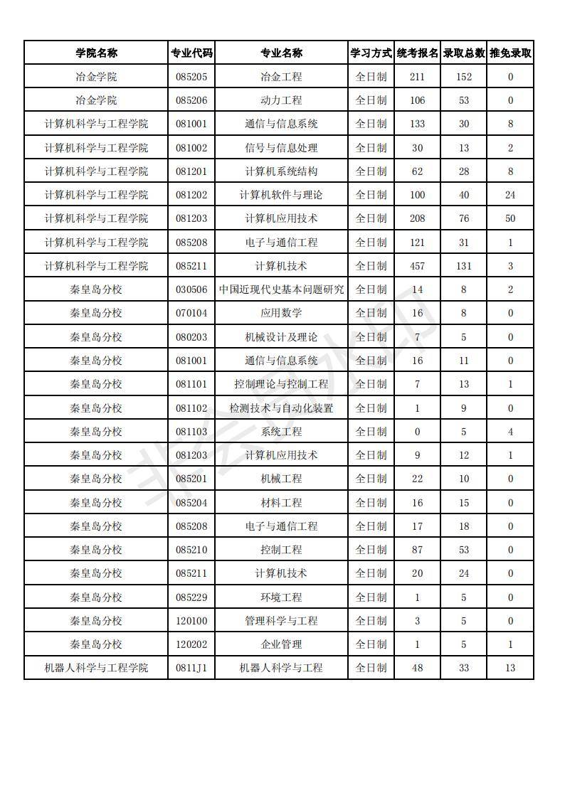 20年东北大学报考人数、录取人数、保研推免人数