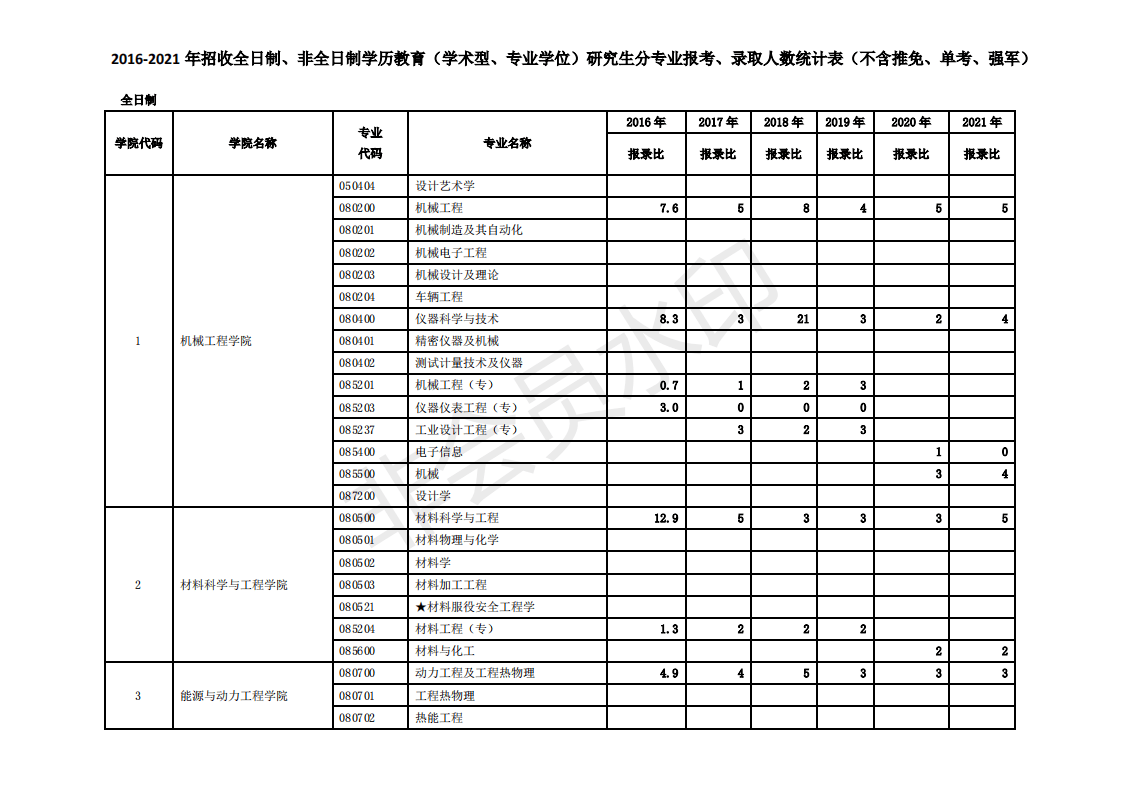 2016-2021 年招收全日制、非全日制学历教育(学术型、专业学位)研究生分专业报考、录取人数统计表(不含推免、单考、强军)