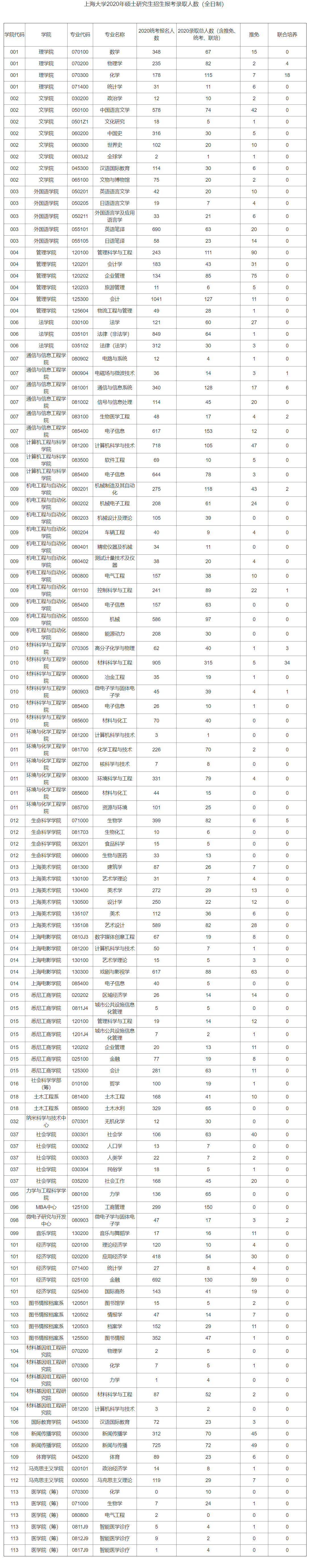 上海大学2020年硕士研究生招生报考录取人数(全日制)