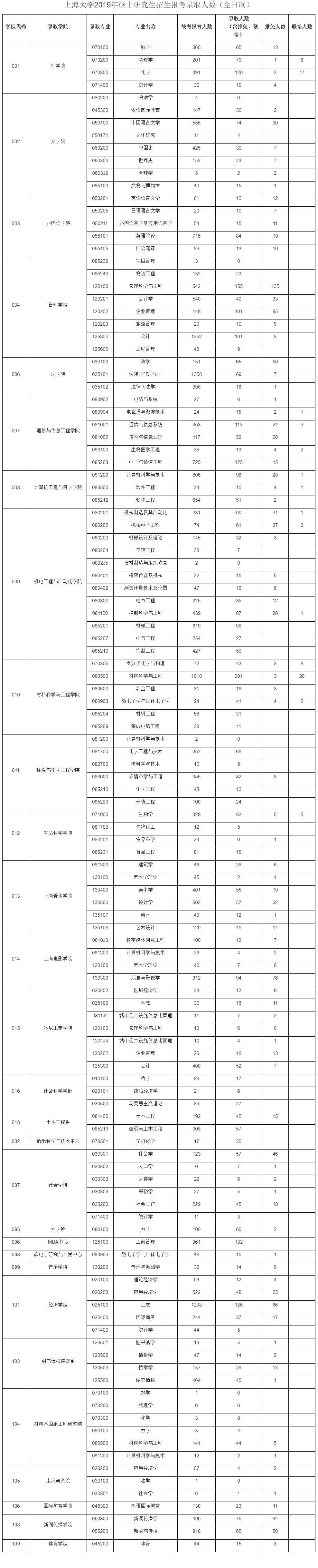 上海大学2019年硕士研究生招生报考录取人数(全日制)