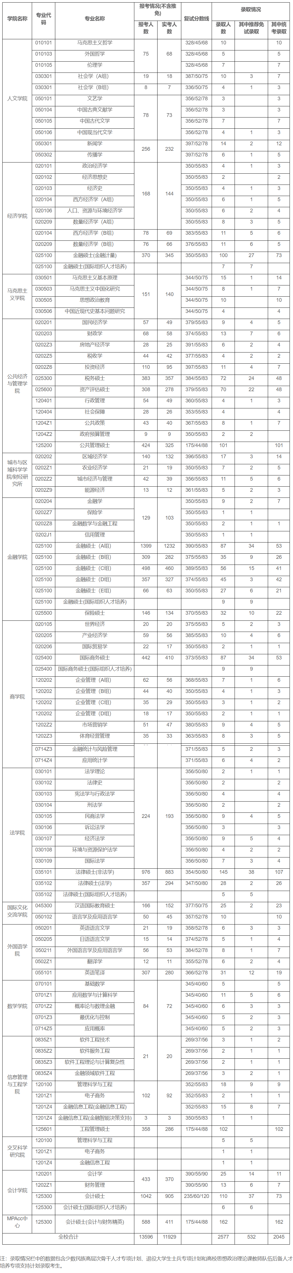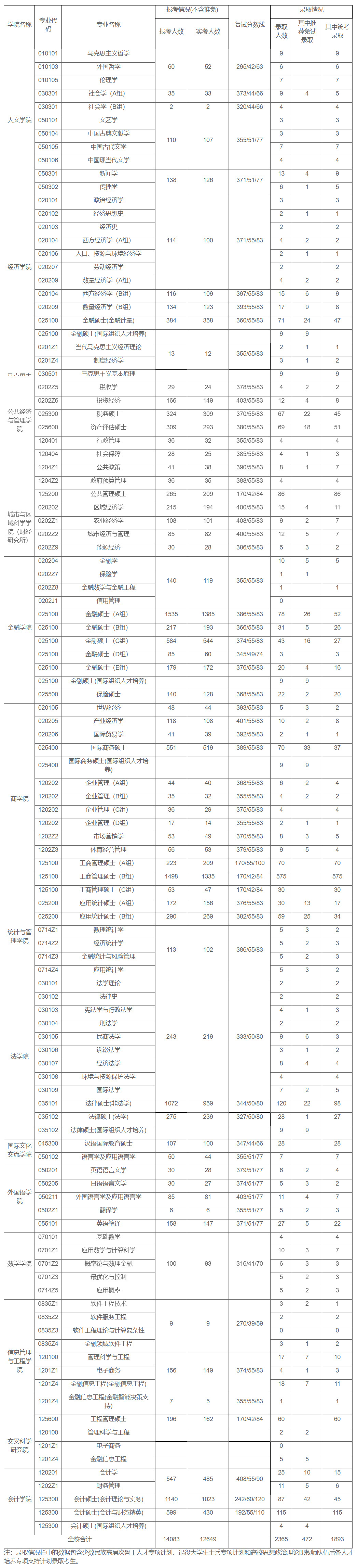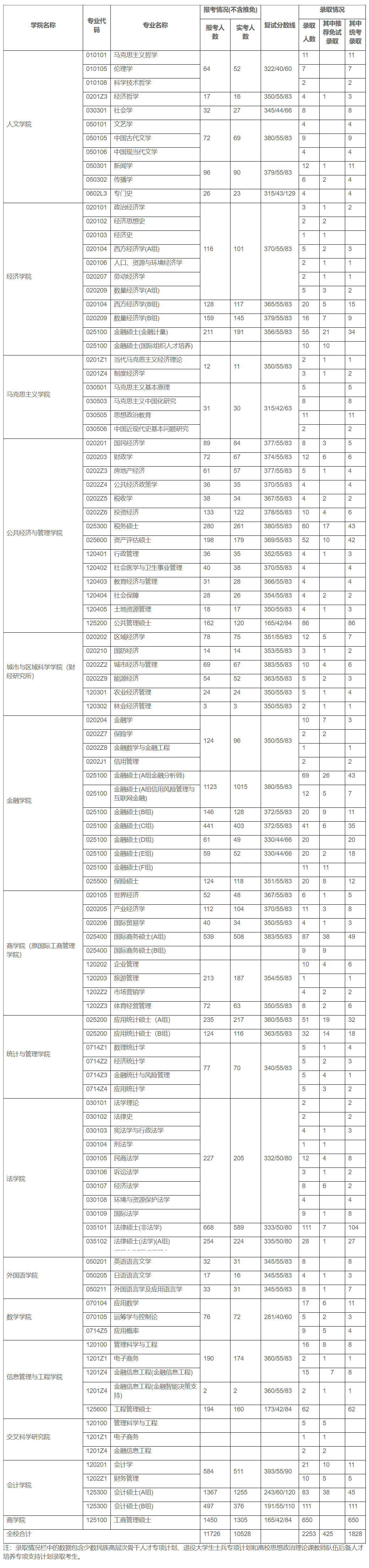 上海财经大学20年硕士生招生各专业报考复试录取情况