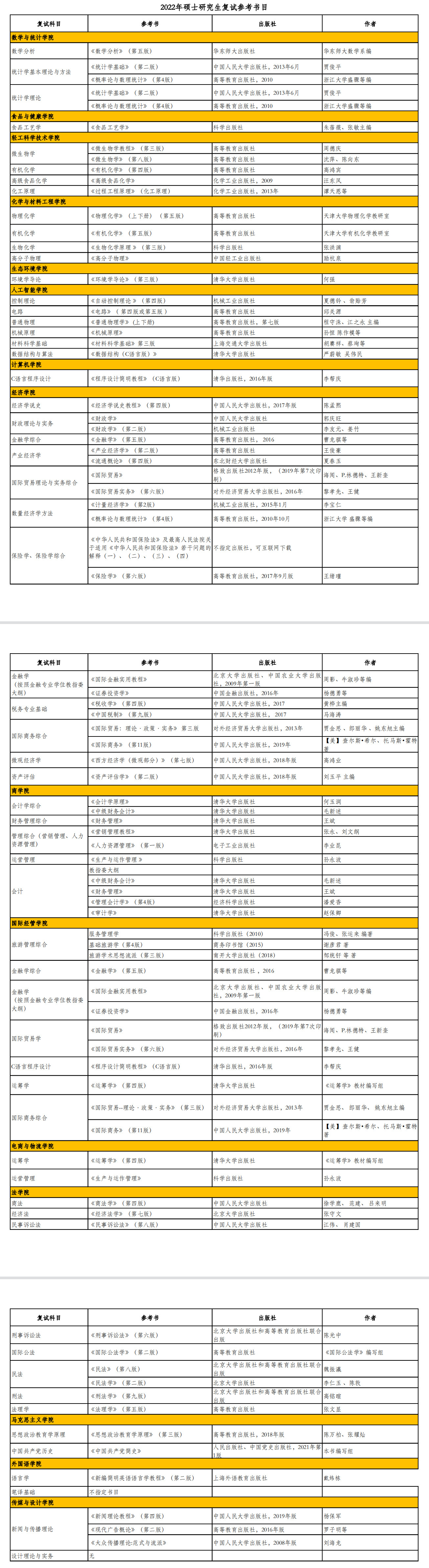 北京工商大学考研辅导班:2022年北京工商大学硕士研究生复试参考书目