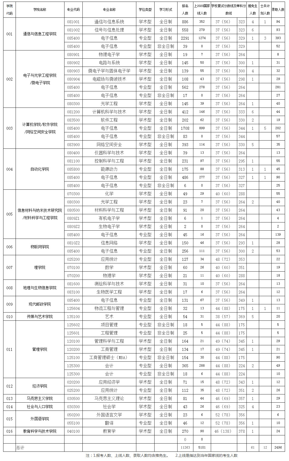南京邮电大学研究生院:2020年南京邮电大学各学院硕士研究生分专业报录比情况汇总