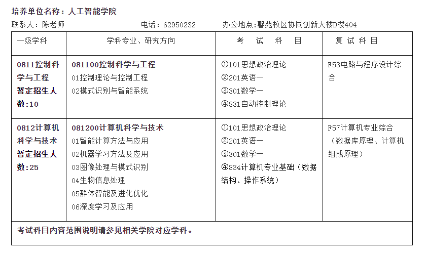 安徽大学考研辅导班:2022年安徽大学人工智能学院学术学位考研招生人数、考试科目及专业课考试范围
