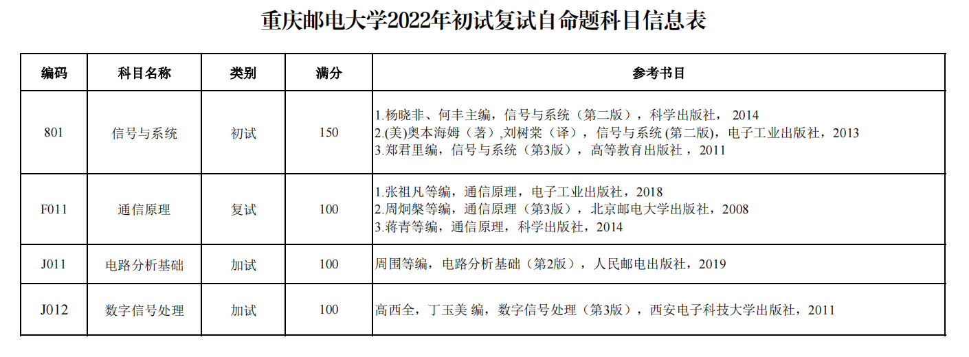 重庆邮电大学考研辅导班:2022年重庆邮电大学通信与信息工程学院硕士研究生考试科目及参考书