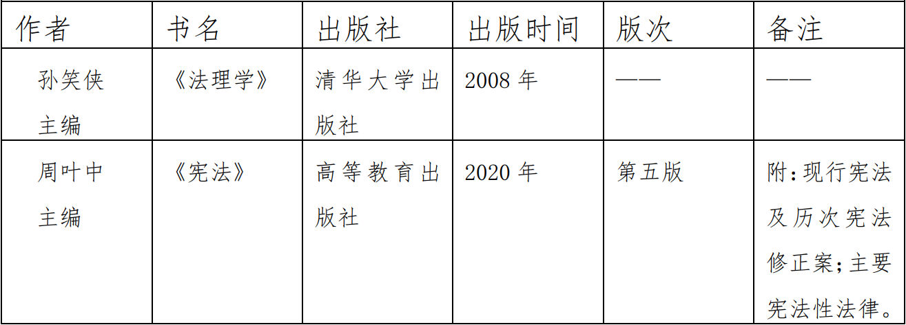 1.法理学部分:(1)法学绪论;(2)法律的概念、特征与分类;(3)“法律是什么” 的各派理解;(4)法律要素;(5)法律渊源、法律效力与法律体系;(6)法律关系; (7)权利、义务、权力以及人权;(8)法律责任;(9)法治原理;(10)立法原理与 制度;(11)司法原理与制度;(12)法律程序原理;(13)法律方法中的法律解释、 漏洞填补;(14)法律的历史发展与世界主要法系;(15)法律与经济、政治、道德、 科技等社会诸因素的关系;(16)法律与正义及其它主要价值。
