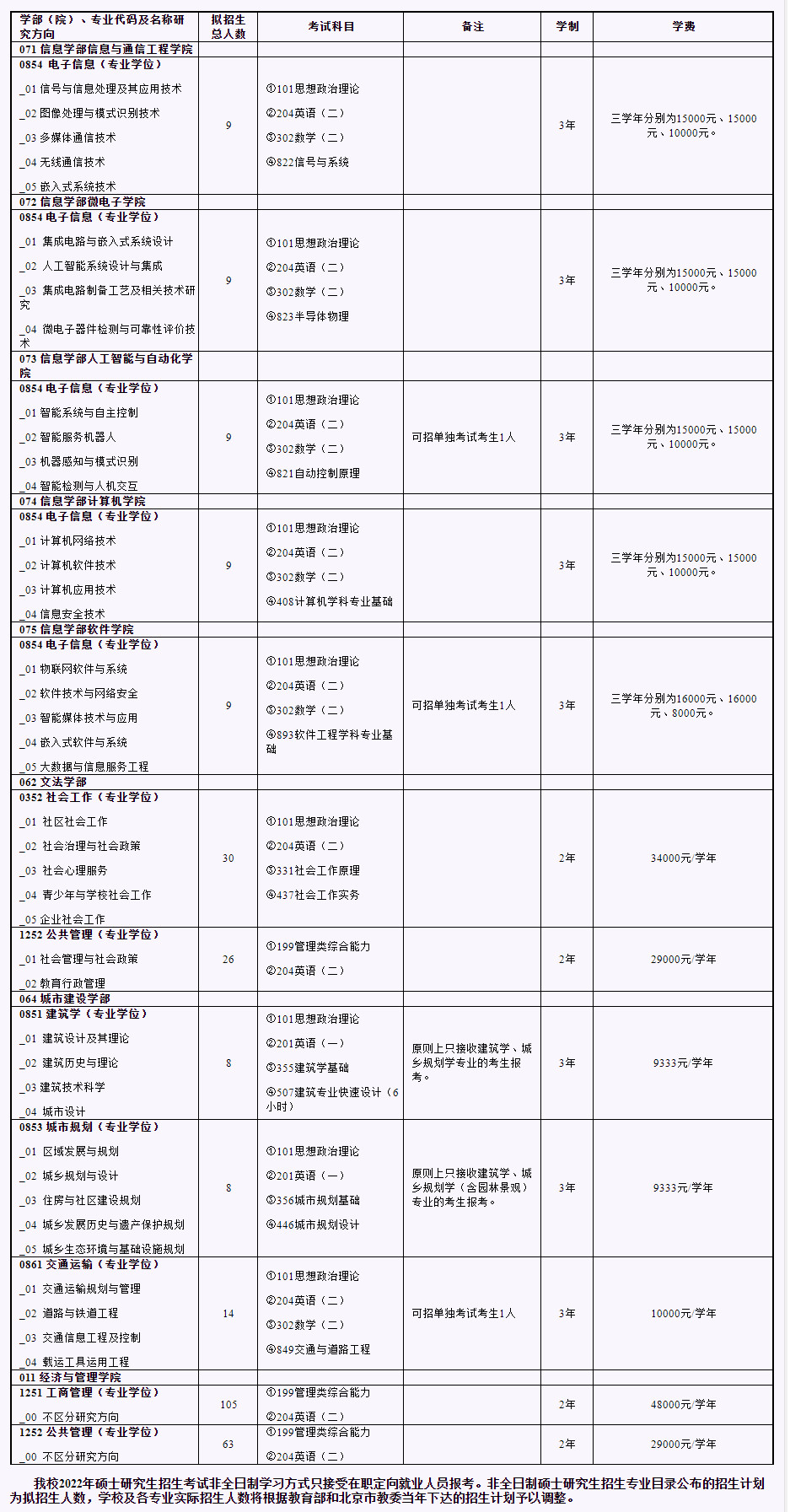 北京工业大学考研辅导班:2022年北京工业大学非全日制硕士研究生招生专业目录、招生人数及考试科目
