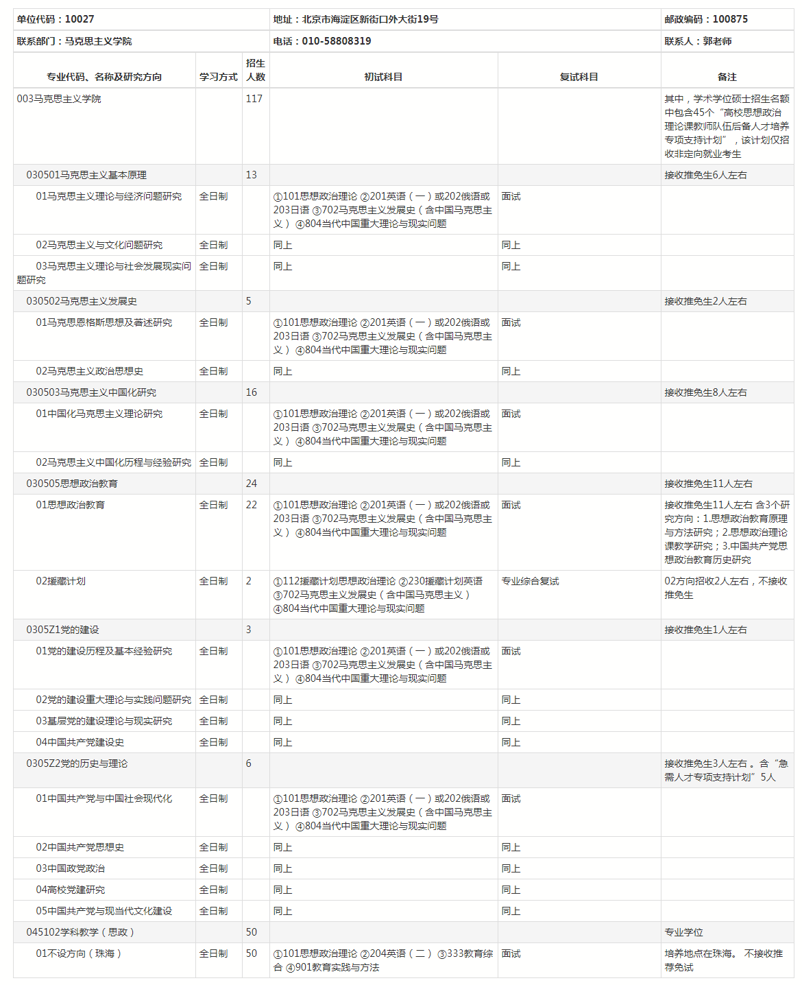 北师大考研辅导班:2022年北京师范大学马克思主义学院硕士研究生招生专业、招生人数、考试科目公布